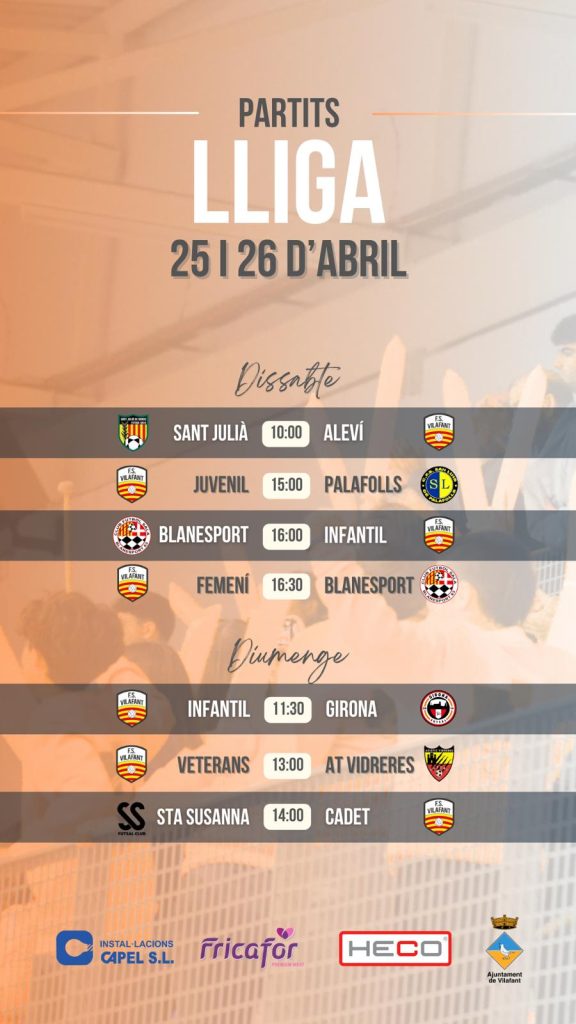 Ultim partit de la lliga, hem sortit molt enxufats amb moltes ganes hem tingut algunes ocasions ells tambe ha estat molt disputada pero als ultims minuts hem encaixat un gol i hem marxat al descans 1-0 a la segona part hem començat be pero ens han marcat un altre gol, hem aconseguit fer el 2-1 pero un gol en contra ens a tornat a baixar la moral… tot i aixo hem continuat per fer el 2-3 pero ja estabem una mica cansats i ells han començat a apretar i a la part final del partit han començat a caure gols fins el 7-2 final. Hem lluitat, hem jugat molt be devant d’un molt bon rival i hem perdut pero amb una bona sensacio del equip!!